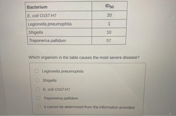 Post a Comment for "Which Organism In The Table Causes The Most Severe Disease?"