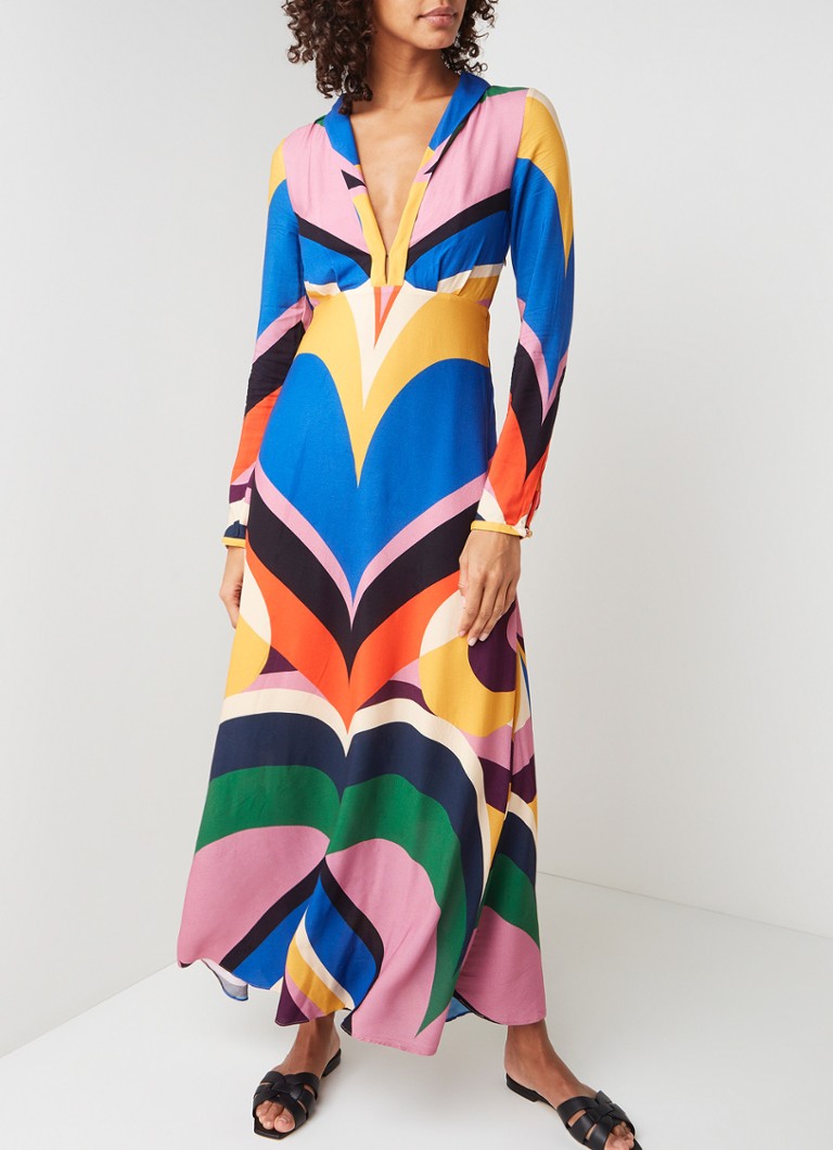 Long sleeve maxi dress with plunging V neck. Fast delivery full service customer support. Print placement may vary Composition 100 VISCOSE Care Instructions MACHINE WASH GENTLE CYCLE.
